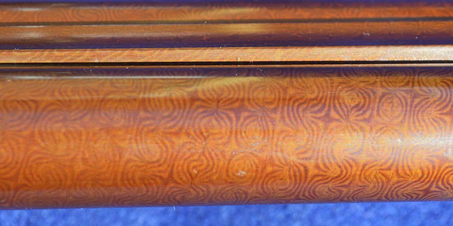 The stock has excellent grain alignment, giving it strength. This was the most important criteria used by European gunmakers to judge quality. Being made of Italian walnut, it is dense and hard, making it resistant to damage. However, because of the uniform background color and absence of figure, on a scale of 0 to 6, this stock would rate a 2+.