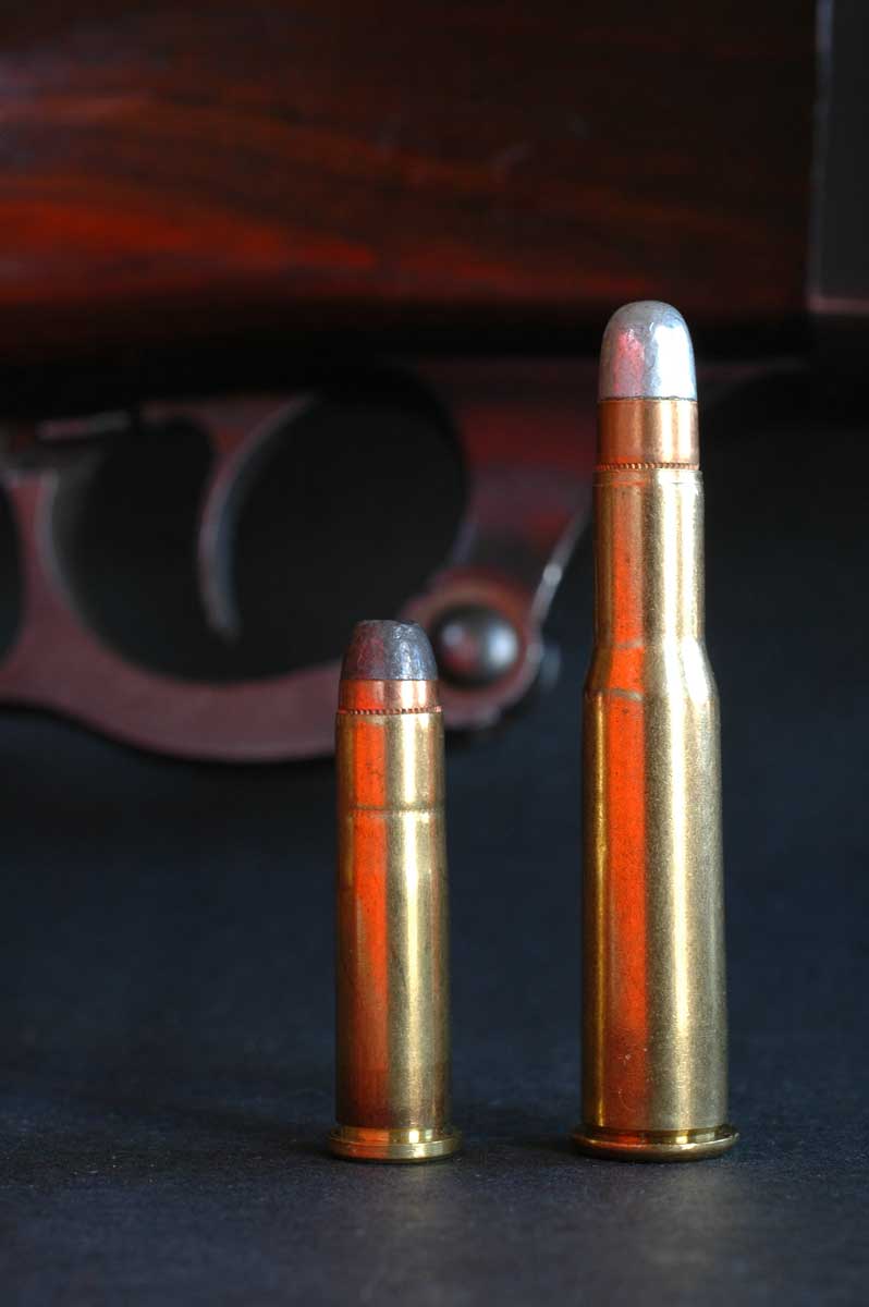A Savage prototype rifle may have been barreled in 32-20 (left). The rifle was first sold in 303 Savage.