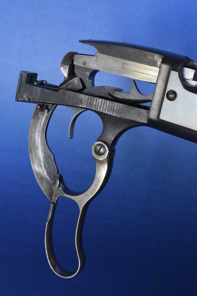 The British government was looking for a repeating rifle, so Arthur fashioned a 45-70 with the Martini’s pivoting breech-block but a tube magazine in the stock. After it lost out to the bolt-action Lee in military trials, Savage revamped the design. Reportedly he sold it for $10,000 to Hartley & Graham years later; but the rifle was not produced.