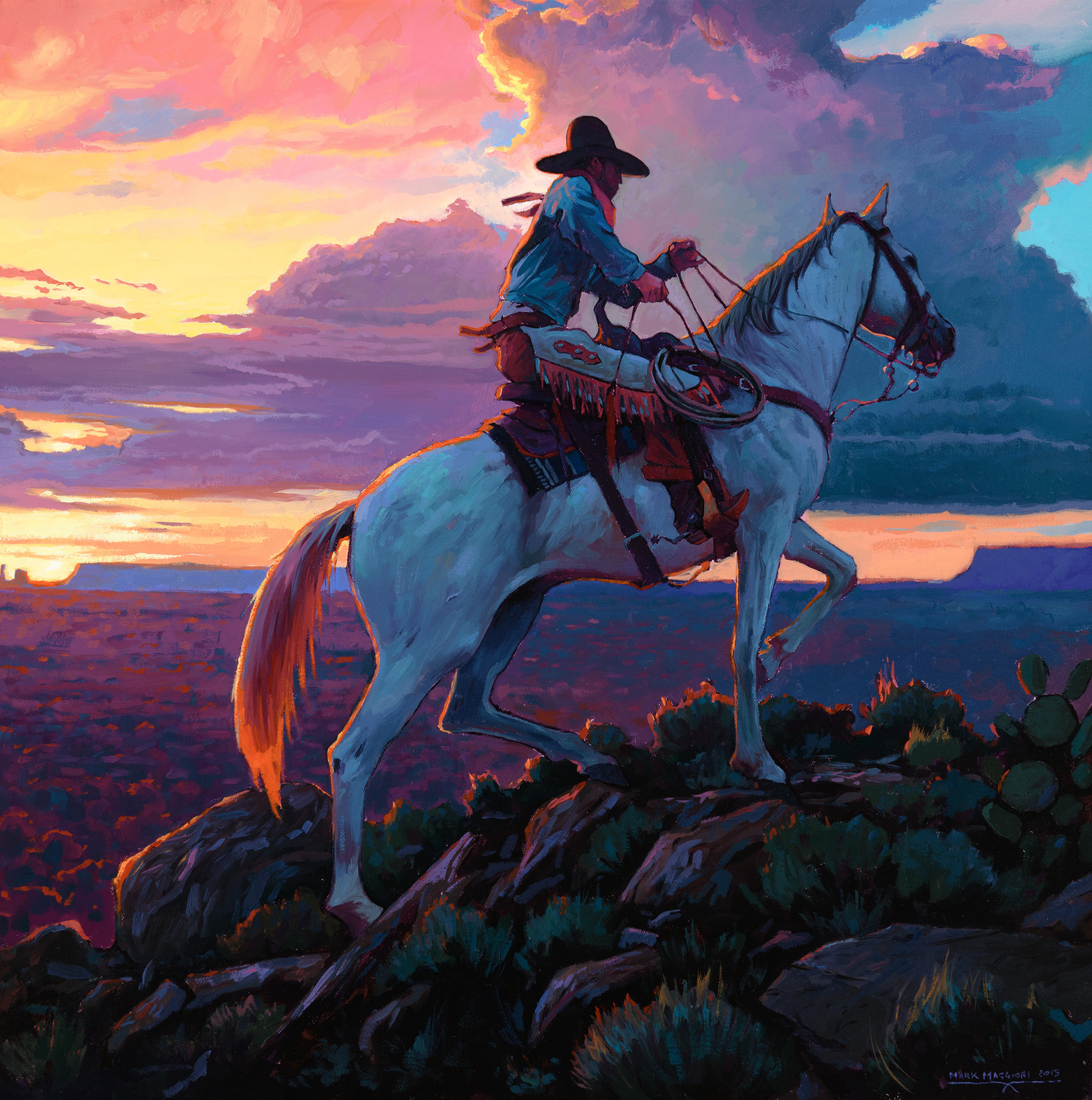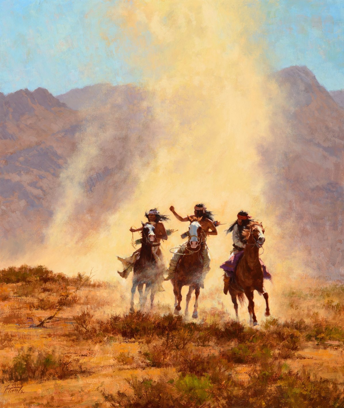 Howard Terpning (b. 1927), Chased by the Devil (1990), oil on canvas, 40 × 34 inches.