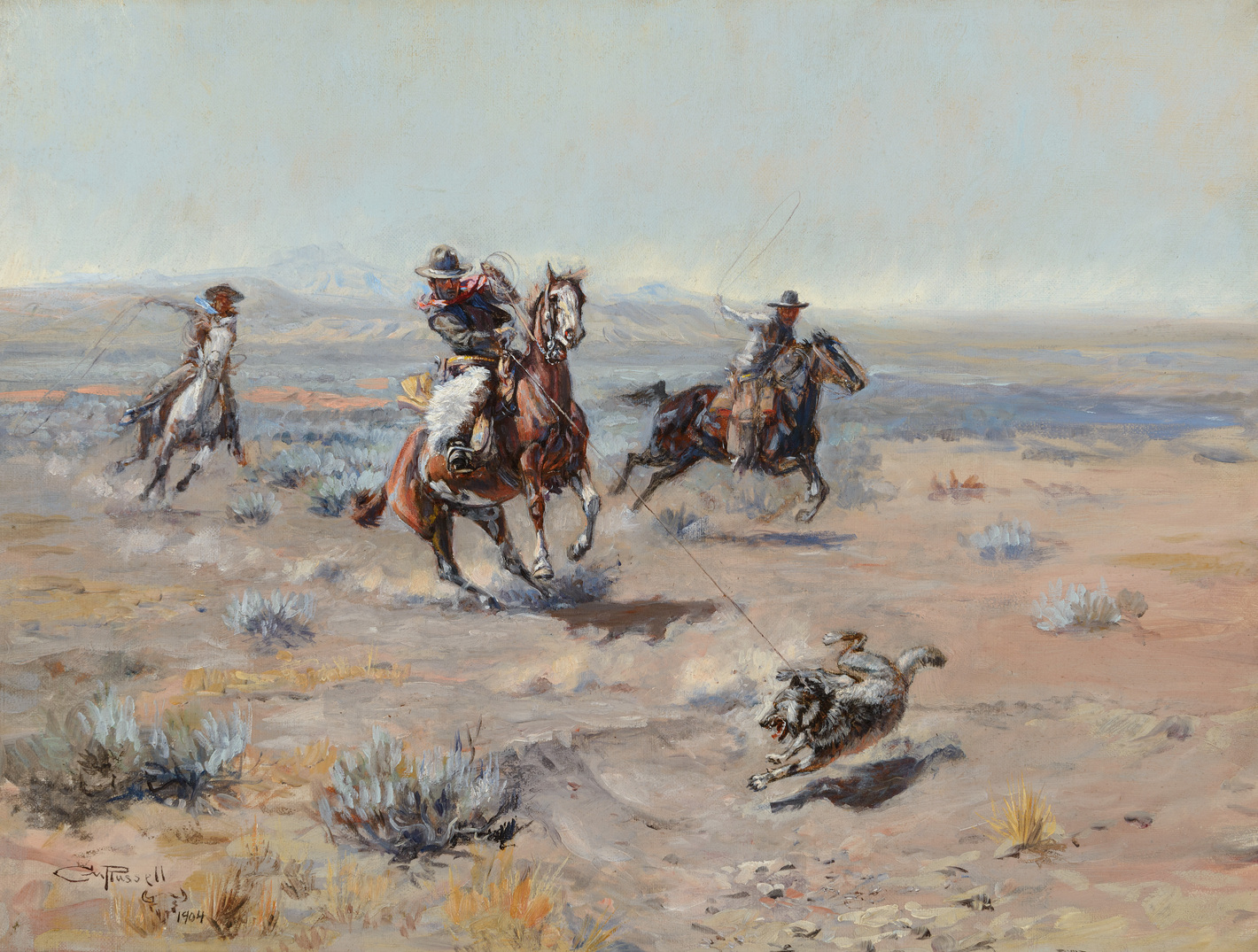Charles M. Russell (1864 – 1926), Roping a Wolf (1904) oil on canvas, 15 × 20 inches.