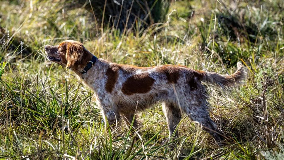 An orange and white Brittany named Mia slinks cheetah-like through cover, crouching motionless on her belly as she peers like a weathervane into the wind, nosing the scent of a partridge-sized bird known locally as a perdiz (partridge in English). The small game bird is, however, a spotted tinamou more closely related to ostrich than partridge.