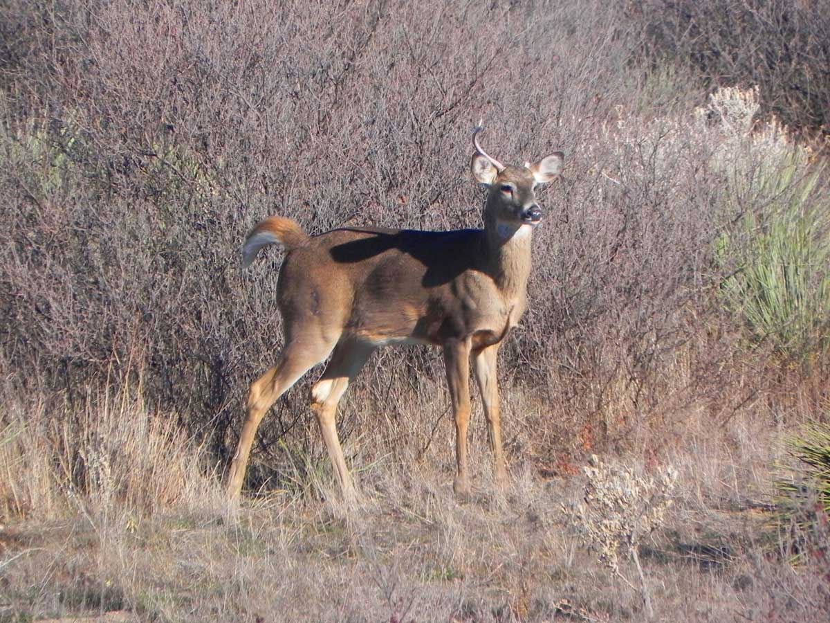 From the thicket at the edge of the pasture, a movement caught my eye. An old buck emerged. He was battered and bruised; his once-majestic antlers now a testament to countless battles fought. Fighting had claimed his right main beam and spoke of the ferocity of his struggles, yet his spirit clearly remained unbroken. Nor had the damage lessened his commanding presence as the old buck emerged from the plum thicket, surveying the pasture with a regal air, as if acknowledging the land as his own. A trio of young bucks emerged, circling the old buck like sharks.