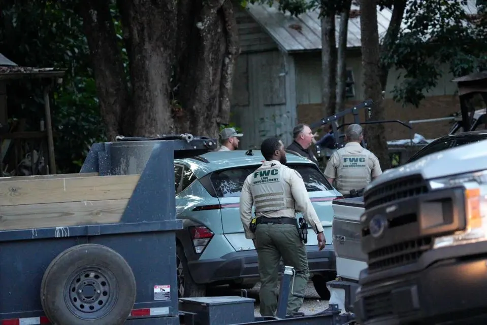 Officers investigate the scene where Florida’s first ever fatal bear attack occurred last May.