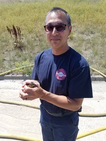 But no. Matt and Jake called in the City of Casper Fire-EMS Department. They arrived and came up with the idea to fill the storm sewer with water from their hoses. That caused the last reluctant duckling to float right out of the pipe where he was quickly netted and hoisted to safety.