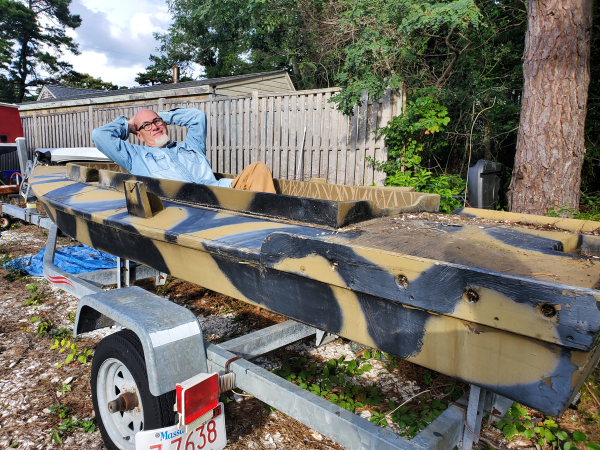 Capt. Kevin Coakley of Wellfleet, Massachusetts,’ Wellfleet Charters thinking about duck season in a layout boat he built himself.