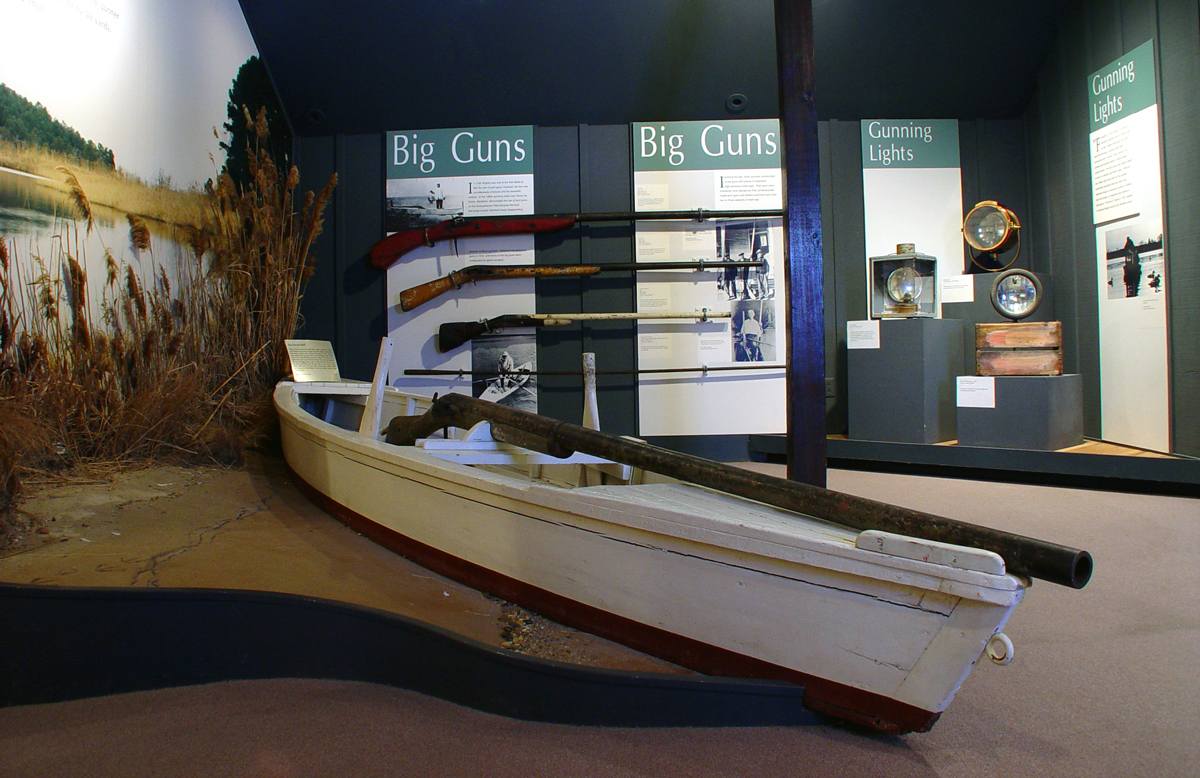 A 16-foot sneak skiff is exhibited in the Waterfowling Exhibition at Chesapeake Bay Maritime Museum. Photo courtesy of Chesapeake Bay Maritime Museum.