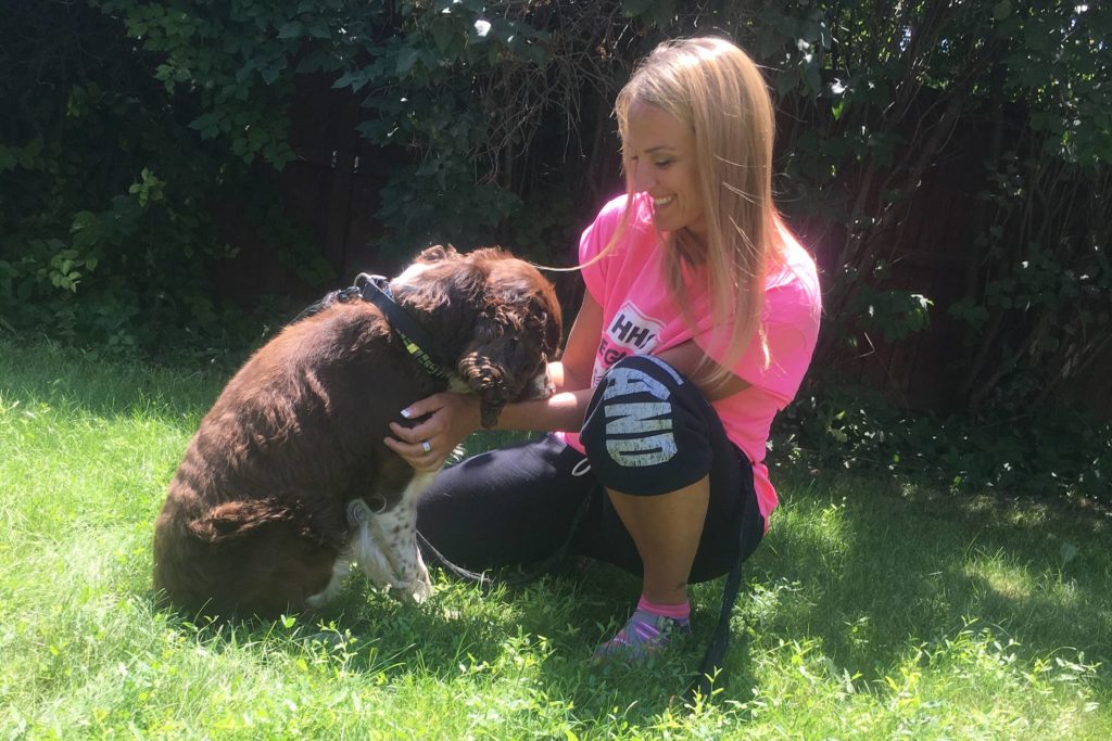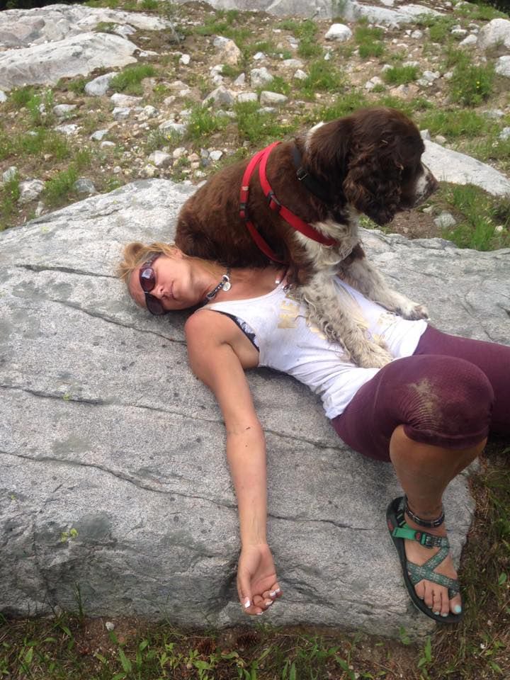 Near the summit, Vargas encountered an injured and lost English Springer Spaniel. She knew the dog would die up there without someone helping it back down so she slung the 55-lb animal around her shoulders and started down.