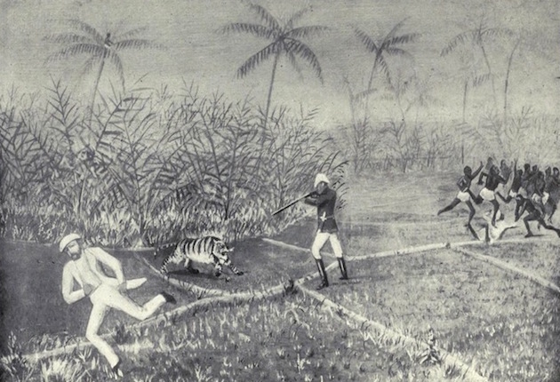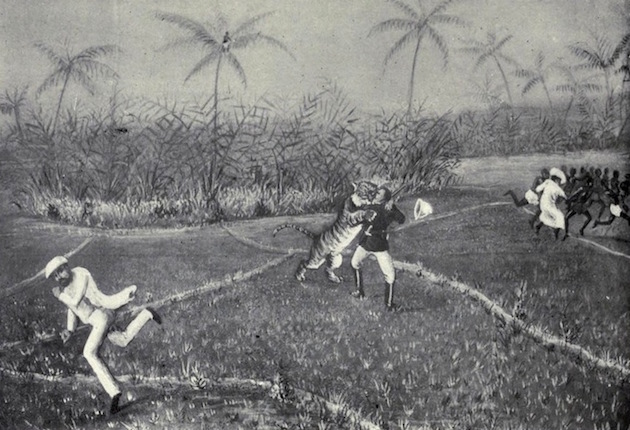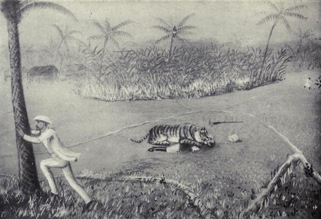 In his 1902 book, How I Killed the Tiger, Lt. Col. Frank Sheffield of the Royal Fusiliers described his brutal encounter with a Bengal tiger. These illustration plates accompanied the text—a terrifying sort of flip book when laid out one after the other.