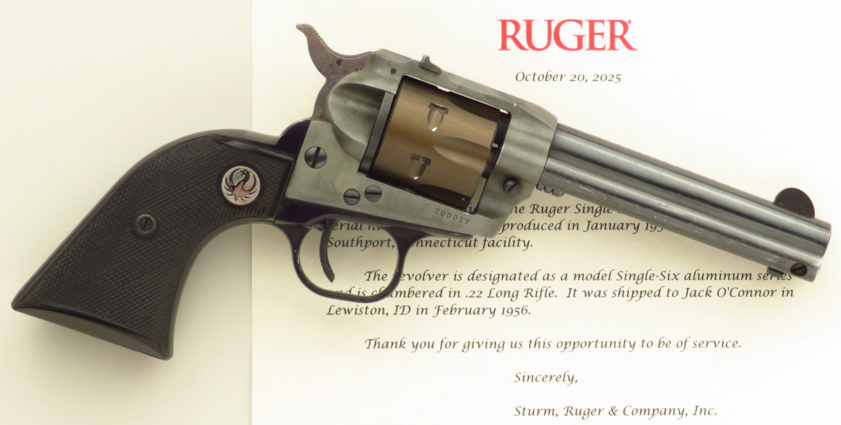 Jack O’Connor’s Ruger Single Six .22 LR “Tri-Color” serial number 17 presented by William Ruger, Sr.