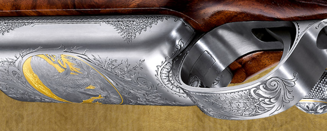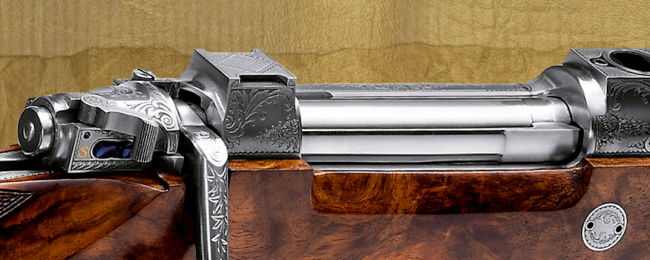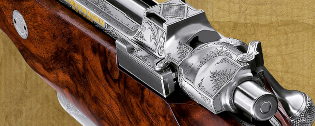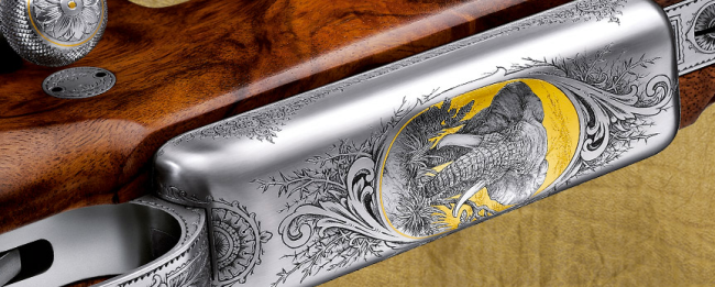 This M98 Magnum “Elephant” was created in a rare collaboration of master engravers. The rifle captures the beauty and power of the elephant, as well as the fascination hunters have with Africa.