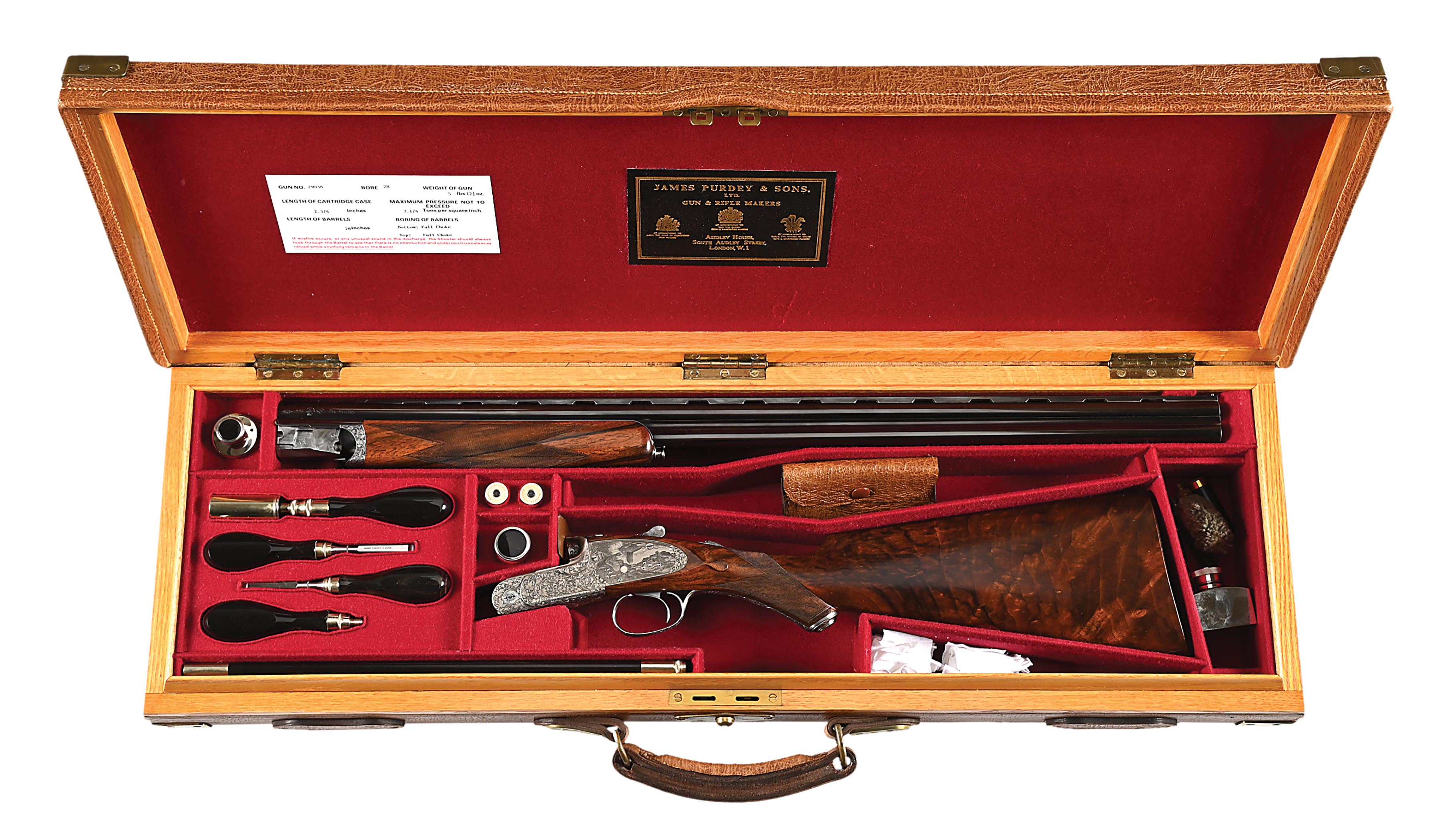 A British brand known for its exquisite custom-made sporting shotguns and rifles, James Purdey & Sons, rose to the top of prices realized. The esteemed London company holds Royal Warrants of appointment as gun and rifle-makers to the British and other royal families, so there can be little argument that a Purdey production is, in every way, fit for a king. Morphy’s offered bidders a 28-bore J Purdey & Sons over-and-under ejector game gun with 28-inch file-cut vent rib barrels, a gold-inlaid serial number and Prince of Wales stock with blackleaf scroll and game-scene vignettes by master engraver Giancarlo Pedretti. Housed in a brass-cornered oak and elephant-hide presentation case containing French blocked accessories with buffalo-horn handles, this exceptional sporting gun commanded $209,100 against an estimate of $80,000-$120,000.