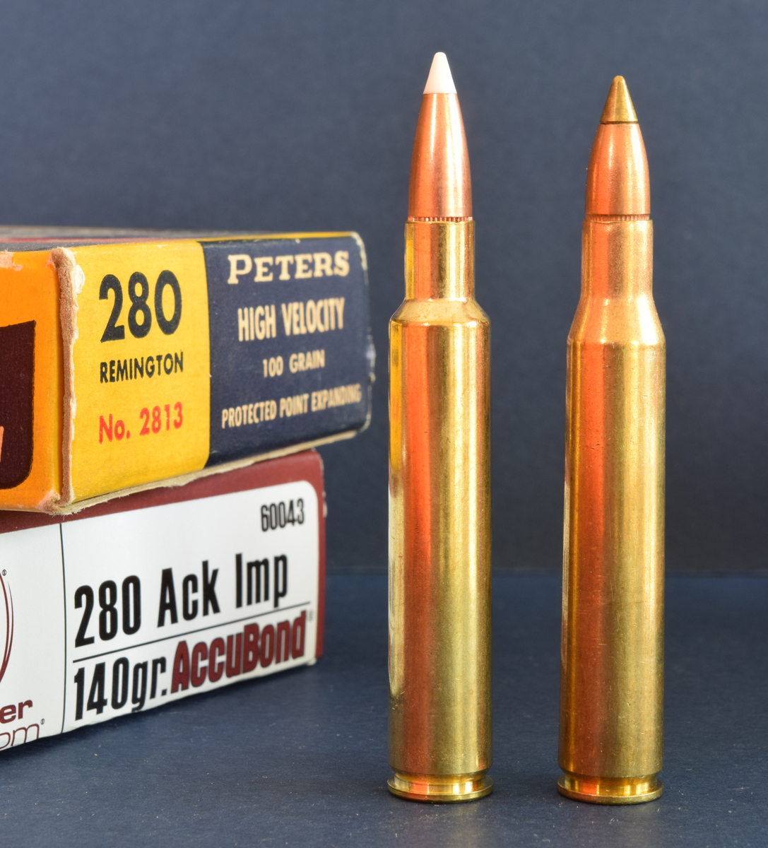 The 280 Ackley Improved (left) was among John Nosler’s favorite cartridges. In 2006, Nosler was first to give the cartridge a commercial home.