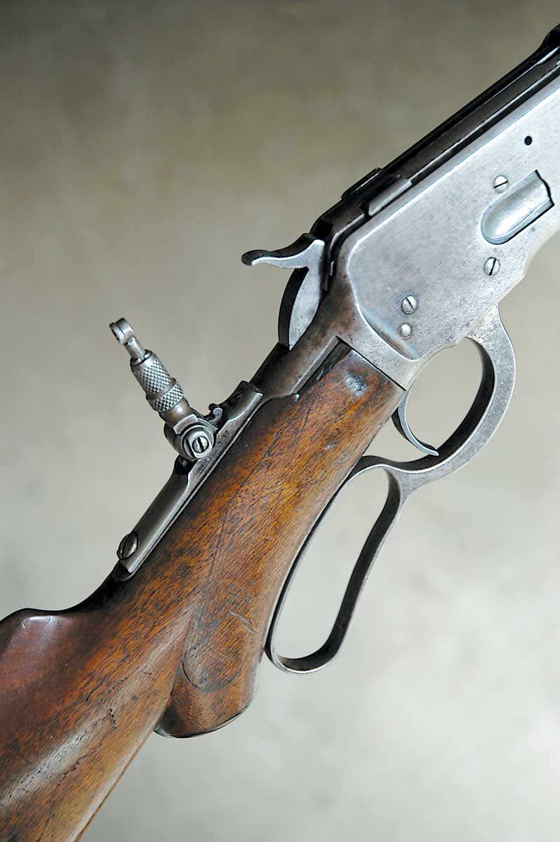 Winchester’s Model 1876, of similar design, had a bigger mechanism to handle such cartridges as the 45-60, introduced in 1879. Tom Horn may have used this mid-length round, with 300-grain bullets at 1,315 fps. Friskier than the 44-40, it still fell shy of matching the loads of “buffalo rifles”—Remington’s Rolling Block and the 1874 dropping-block Sharps.