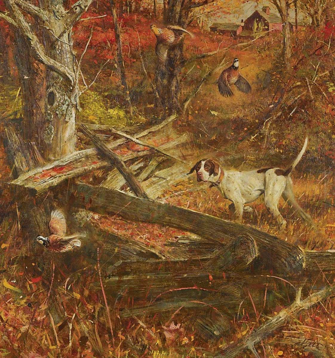 Sam was still on eggshells when the man reached the end of the road and braced himself for the inevitable flush just in time to see the grouse burst from the very last shred of cover where the thicket trailed off into the big woods below. The bird blew out low but quickly climbed nearly vertical. At the peak of his rise, the little Parker pulled in front of his beak so quickly that it seemed the gun moved of its own volition and the cock exploded in a blizzard of feathers spotlighted in a shaft of morning sun before falling in the middle of the little road. And in a single instant, the shot had bound the man and dog and bird and mountain and the sun and the wind and river and the far blue ridge into a splendid cameo of time and space.
